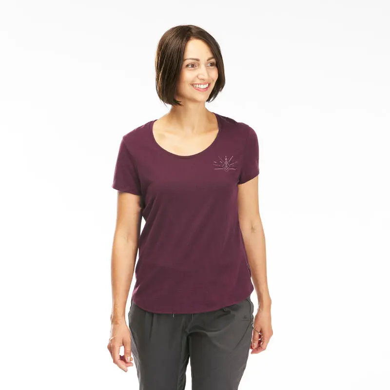 Compra en Decathlon Camiseta de montaña y trekking manga corta Mujer Quechua NH500 Nuestros diseñadores senderistas han ecodiseñado esta camiseta para hacer senderismo en perfeccionamiento en llanura, bosque o litoral.